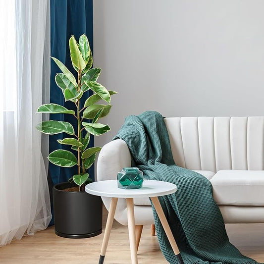 Kazeila 12 Inches Ceramic Planter Pot - Saucer and Drainage Hole - Full Glazed - Matte Black