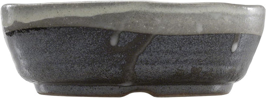 Wazakura Tokoname Series Small Handmade Striped Square Bonsai Pot with Drainage Hole 4.1in (105mm) Made in Japan, Ceramic Training Starter Container, Decorative Flower Planter - Brown