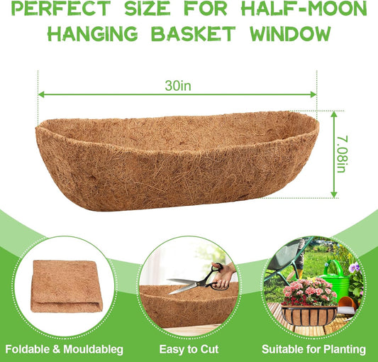 Riare 4 Pack 30 Inch Trough Coco Coir Liners for Planters, Pre-Formed Coconut Coir Replacement Liner Natural Coco Fiber Window Box Liners for Wall Planter, Window Basket Deck Railing Planter