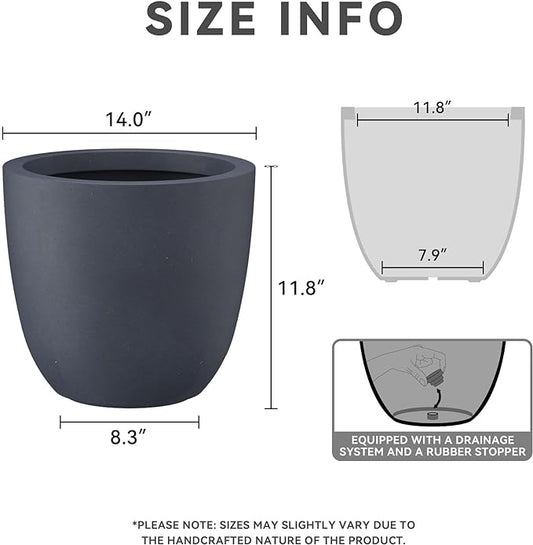Kante 14 Inch Dia Round Concrete Planter, Indoor Outdoor Large Plant Pot with Drainage Hole and Rubber Plug for Home Patio Garden, Dark Gray