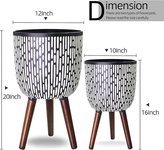 2 Set Plant Pot with Stand 10 & 12 inches, Mid-Century Large Planter with Legs for Indoor Plants, Boho Print Standing Plant Pot with Drainage Plug for Monstera, Herb, Succulent Flower Pot