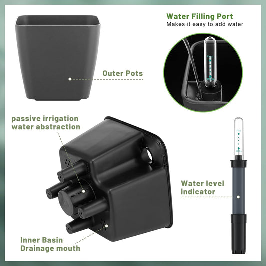 Self Watering Planters for Indoor Plants 5 inch 3 Pack Grey Planter with Water Level Indicator African Violet pots