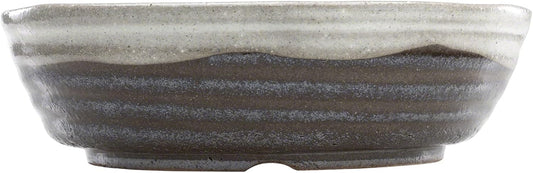 Wazakura Shigaraki Series Handmade White Stripe Glazed Ceramic Bonsai Pot with Drainage Hole, 8.2 (210 mm) Made in Japan, Garden Training Container, Flower Planter, Succulent Bowl - Big Size