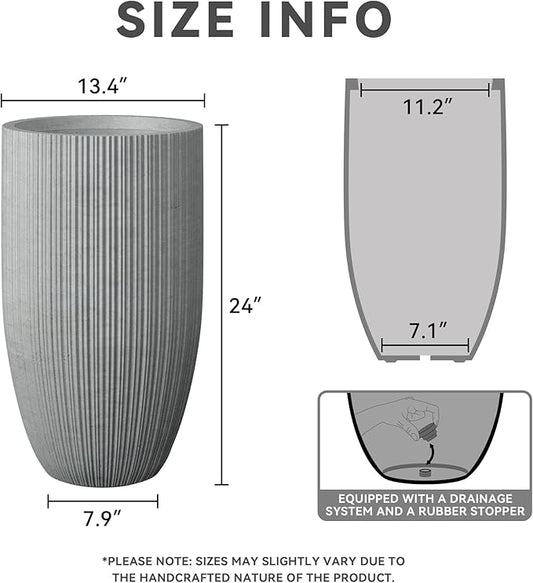 Kante 24 Inch Tall Round Concrete Planter, Large Indoor Outdoor Plant Pots with Drainage Hole and Rubber Plug, Modern Decorative Garden Pots for Home Patio Porch, Natural Concrete