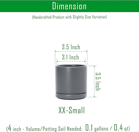 D'vine Dev Set of 2 Plants Pots, 3.5 Inch Ceramic Planter Pot for Plants with Drainage Hole and Saucer, Speckled Grey, 94-V-A-3