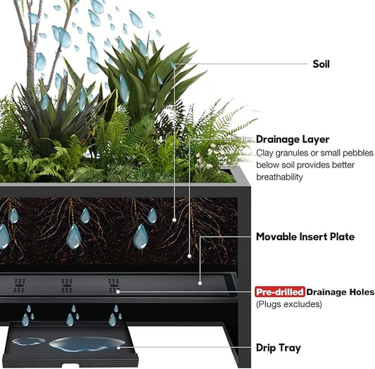 Worth Garden Metal Rectangular Planter Box - Black Powder Coated Steel Planter - 16" H. Tall Heavy Duty Modern Flower Plant Pot - Indoor & Outdoor, Commercial & Residential (16"x12"x36")