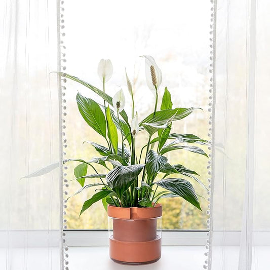 Phoenix Vine 8 Inch Self Watering Planter Pot, Terracotta Clay Pot with Glass Reservoir for Indoor Plants, Herbs, Flowers, Set of 1, 52-A-H-1