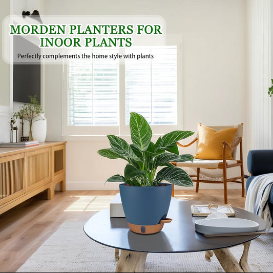12/10/8 inch Plant Pots, Large Plastic Self Watering Planters with Drainage Holes, Deep Reservoir, Water Level Indicator, Modern Decorative Flower Pots for Indoor Outdoor Plants (Navy Blue, 12/10/8)