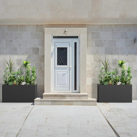 Outdoor Metal Planter Box - Rectangular Trough, All-Weather Durable with 4 Drainage Holes, 25x11x13 Inches for Porch & Patio, Black