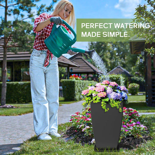 21" Tall Outdoor Planters Set of 2,Front Porch Planter Pots with Drainage Design Holes for Patio, Porch, Garden, Indoor,Black