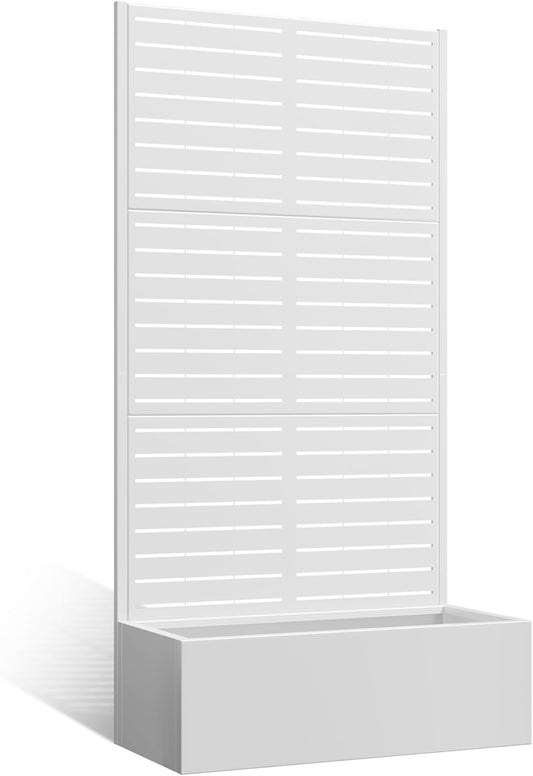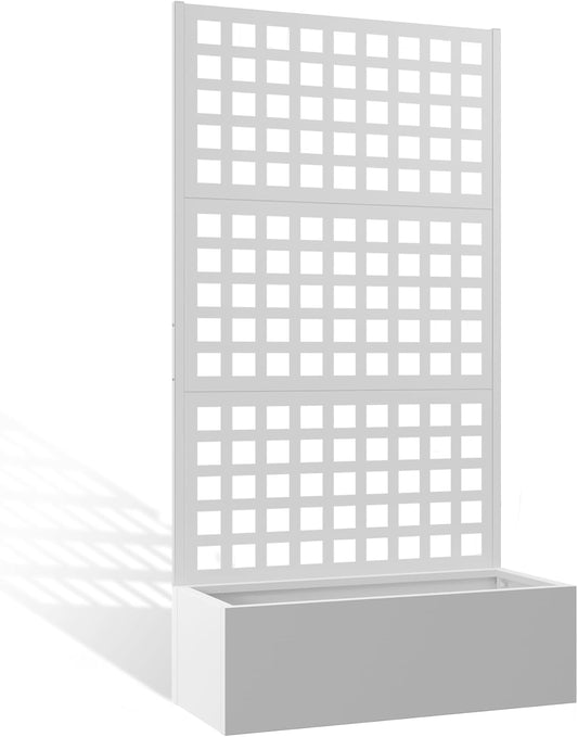 Metal Planter Box with Trellis, Heavy-Duty Raised Garden Bed for Climbing Plants, Drainage Hole, Outdoor Planter Box with Privacy Screen,35''L×16''W×71''H
