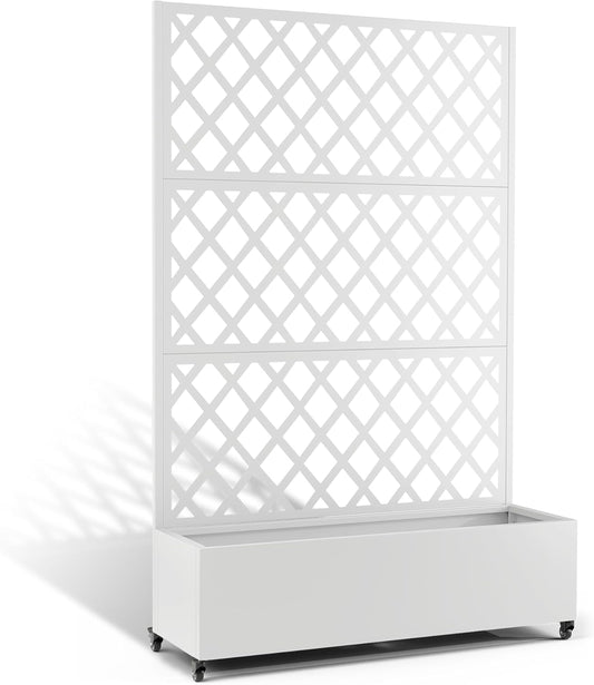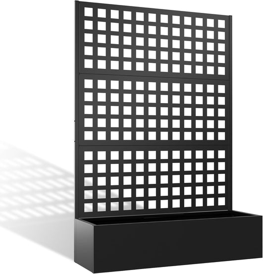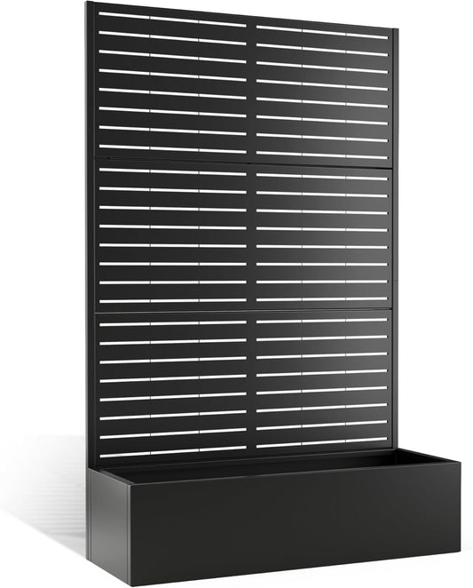Metal Planter Box with Trellis, Heavy-Duty Raised Garden Bed for Climbing Plants, Drainage Hole, Outdoor Planter Box with Privacy Screen,47''L×16''W×71''H
