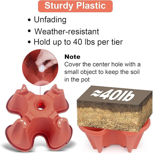 Vertical Planter 4 Tier Stackable Planters Garden Planters Strawberry Herb Flower and Vegetable Planter Indoor Outdoor Gardening Pots with Removable Wheels and Tools