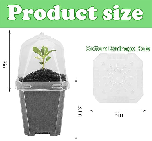 EBaokuup 30PCS Clear Plant Nursery Pots with Humidity Dome - 3" Durable Plastic Gardening Pot with Labels, Small Plant Container for Seedlings/Vegetables/Succulents/Cuttings