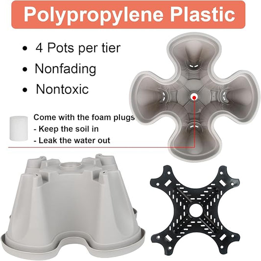Vertical Planter 4 Tier Stackable Planters Garden Planters Strawberry Herb Flower and Vegetable Planter Indoor Outdoor Gardening Pots with Removable Wheels and Tools