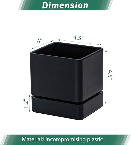 4 Inch Herb Planter Pot, Plastic Planter with Drainage Holes and Saucer, Modern Decorative Gardening Pot for Indoor Plants, Flowers, Herbs, Succulents, Black, Set of 3, 76-Y-B-3