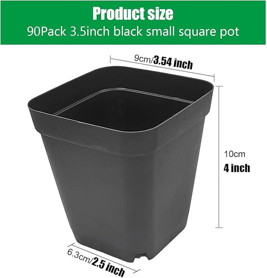 Square Nursery Pots 3.54Inches 90 Pcs Seedling Flower Post Plastic Thick Seed Start Germination for Plant Propagation,Sturdy Suit for 1020 Trays(Black,3.54Inches,90Pcs)