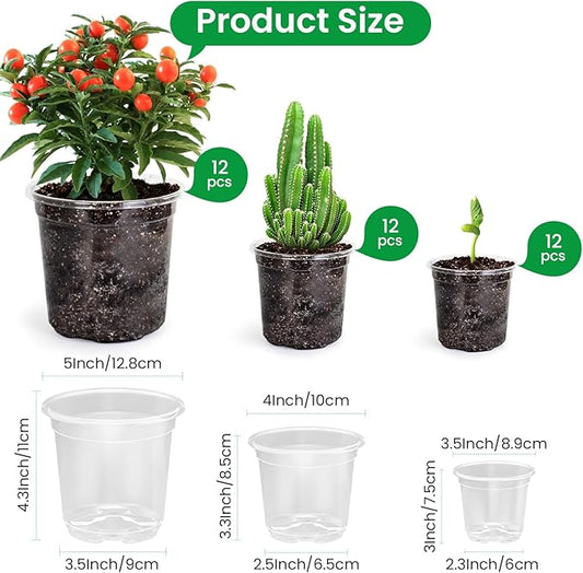 36 Packs 5/4/3.5 Inch Reinforced Clear Nursery Pots with Drainage Hole, Transparent Variety Pack Plastic Plant Pot Seedling Planter Seed Starter Flower
