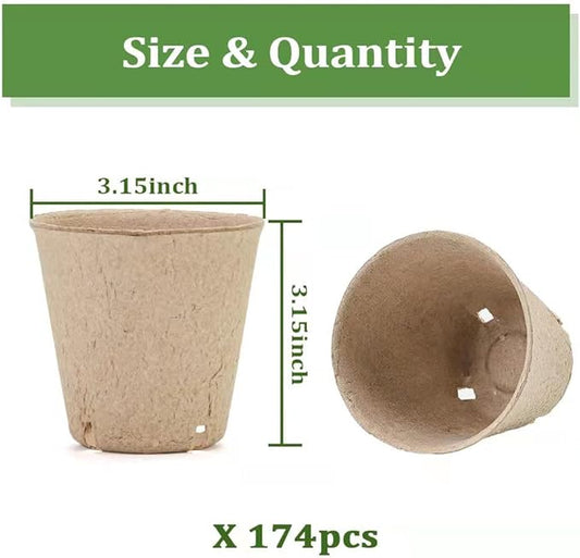 Seed Starter Trays, 174 Pcs 3.15 Inch Round Biodegradable Peat Pots, Drainage Holes Nursery Pot, (Light Brown Round)