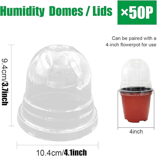 50 Pack Clear Plant Pot Domes, Transparent Seedling Domes Compatible with 4 Inch Seed Starter Pots for Indoor Outdoor Gardening(50Pcs, Clear)