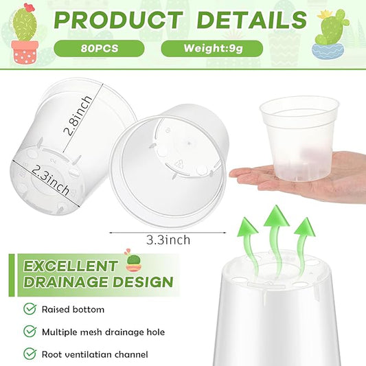 Yaomiao 80 Pcs 3 Inch Clear Mini Plastic Plant Pot Nursery Seedling Pots Seed Starter with Drainage Holes for Indoor Outdoor Garden Succulent Plants Cuttings Transplanting