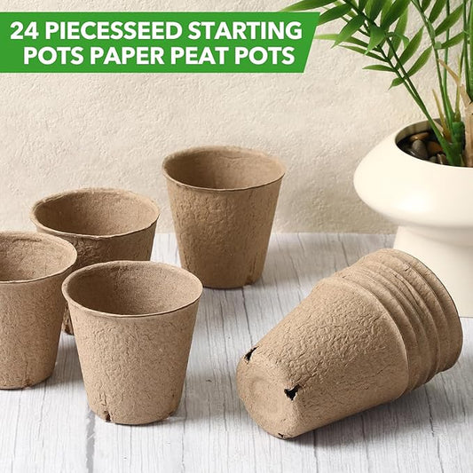 24 Pcs 3. 2 Inch Nursery Pots with Humidity Dome, Plant Seeding Starter Peat Pots for Planting, Flower Germination, Herbs and Vegetable Saplings, Indoor Outdoor Use