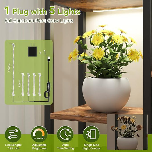 C2 Plant Stand Indoor with Grow Lights, Indoor Tiered Metal Plant Stand 70.87" Tall Plant Shelf with Hooks for Hanging, Plant Holder Display Shelves for Patio, Garden, Outdoor