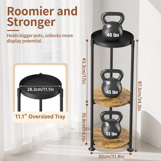 LASZOLA 3 Tier Black Plant Stand Indoor for Large Tall Heavy Duty Flower Planter, Metal Vertical Multi Level Rack for Narrow Floor Corner, Sturdy Round Holder Organizer, Modern, Mid Century, Farmhouse