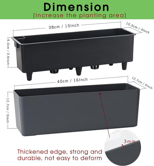 GardenBasix Elongated Self Watering Planter Pots Window Box 5.5 x 16 inch Indoor Home Garden Modern Decorative Planter Pot for All House Plants Flowers Herbs (Dark Grey,1-Pack)