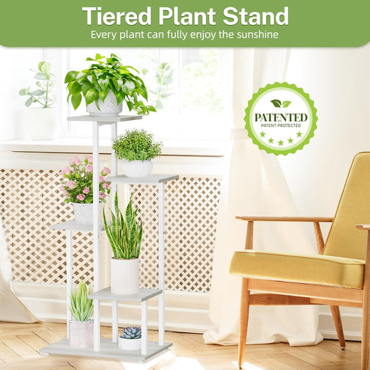 iDavosic.ly 5 Tier Plant Stand Indoor, Tiered Corner Plant Shelf for Multiple Plants, Metal Wood Tall Plant Display Rack Flower Holder for Patio Porch Garden Balcony Bedroom, White