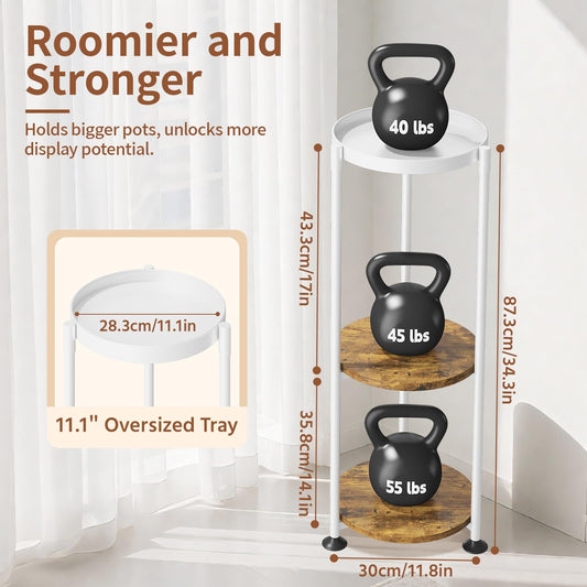 LASZOLA 3 Tier White Plant Stand Indoor for Large Tall Heavy Duty Flower Planter, Metal Vertical Multi Level Rack for Narrow Floor Corner, Sturdy Round Holder Organizer, Modern, Mid Century, Farmhouse