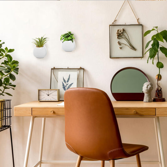 MyGift 6-inch White Ceramic Wall Planter Vase - Hanging or Desktop Succulent Plant String of Pearls Cactus Indoor Pots, Set of 2