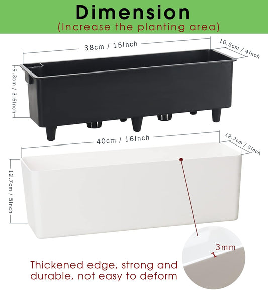 GardenBasix Elongated Self Watering Planter Pots Window Box 5.5 x 16 inch Indoor Home Garden Modern Decorative Planter Pot for All House Plants Flowers Herbs (White,1-Pack)