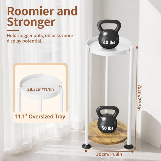 LASZOLA 2 Tier White Plant Stand Indoor for Large Tall Heavy Duty Flower Planter, Metal Vertical Multi Level Rack for Narrow Floor Corner, Sturdy Round Holder Organizer, Modern, Mid Century, Farmhouse