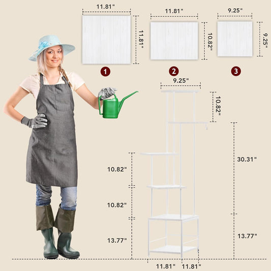 AZERPIAN Plant Stand 5 Tier Indoor Metal Flower Shelf for Multiple Plants Corner Tall Flower Holders for Patio Garden Living Room Balcony Bedroom, Black (5 Tier-White)