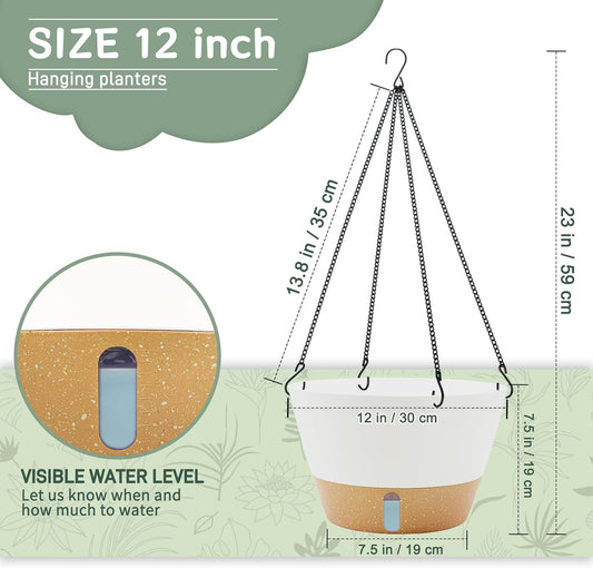 ZMTECH 12 Inch Hanging Planters for Indoor, 2 Pack Large Hanging Plant Pot with Visible Water Level and Chain, Self Watering Hanging Flower Pot for Outdoor Garden Porch(12Inch, White)