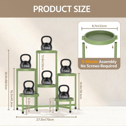 LASZOLA 6 Tiered Folding Plant Stand Indoor for Multiple Large Planter, Tall Heavy Duty Adjustable Rack with Rust Proof Plastic Shelving, Sturdy Vertical Tree Organizer for Narrow Inside Floor, Green