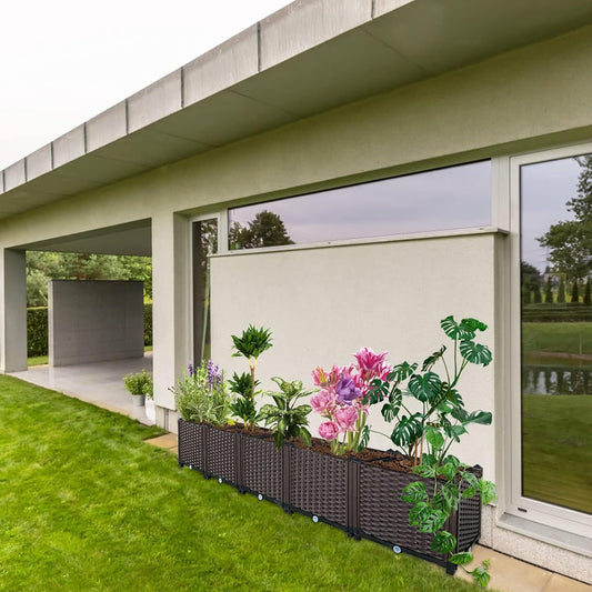 Vegetable Planter Box Large Planters for Outdoor Plants Garden Box with Drain Outlet for Flower/Herbs, Patio-Balcony-Backyard with Easy Assembly