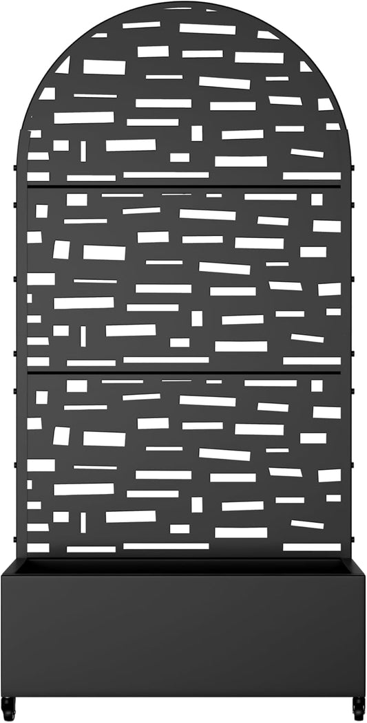 Casaphoria Metal Raised Garden Bed with Trellis and Wheels, 72"x47"x16" Arched Planter Box for Climbing Plants, Vegetables & Vines, Features Drainage Holes and Privacy Screen (Black-Fence)