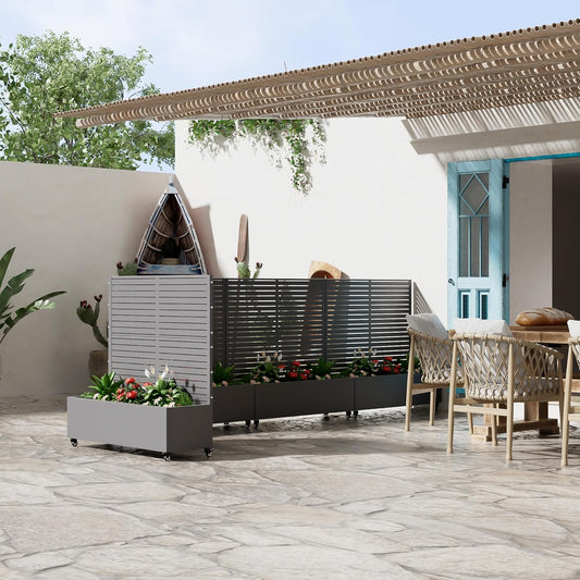 Casaphoria Metal Raised Garden Bed with Trellis and Wheels, 47"x47"x16" Planter Box for Climbing Plants, Vegetables & Vines, Features Drainage Holes and Privacy Screen (Grey-Louvered)