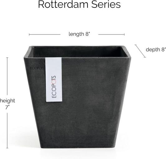 Ecopots Rotterdam Durable Modern Square Indoor/Outdoor Recycled-Based Composite Flower Planter, Dark Grey, 8"