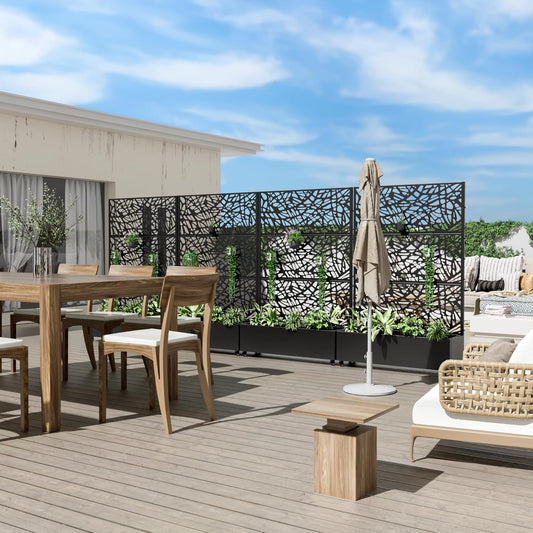 Casaphoria Metal Raised Garden Bed with Trellis and Wheels, 72"x47"x16" Planter Box for Climbing Plants, Vegetables & Vines, Features Drainage Holes and Privacy Screen, Black(Spring&Louvered)