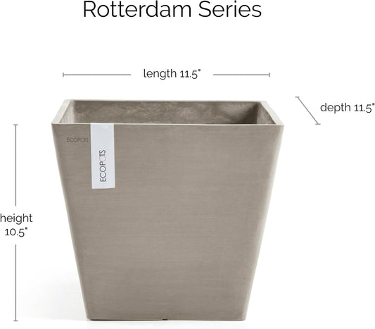 Ecopots Rotterdam Durable Modern Square Indoor/Outdoor Recycled-Based Composite Flower Planter, Taupe, 12"