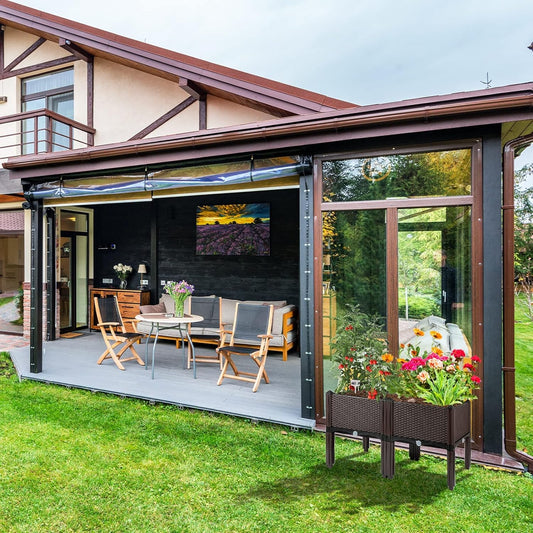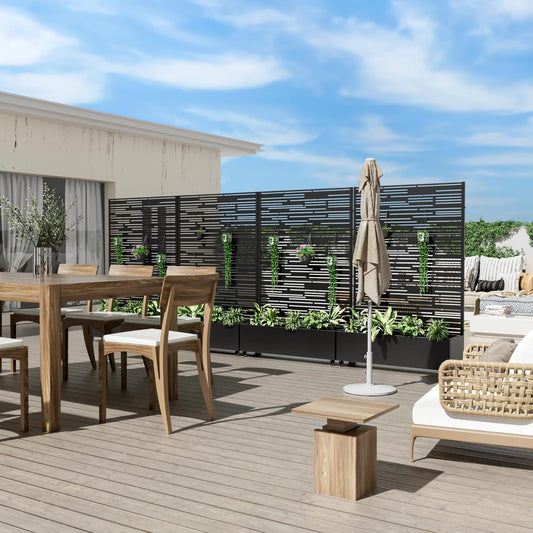 Vertical Screen Planter Bed - Raised Garden Box with Trellis for Climbing Plants, Durable Privacy Fence Planter for Outdoor, Patio, Deck Aluminum Frame, Brown with Base