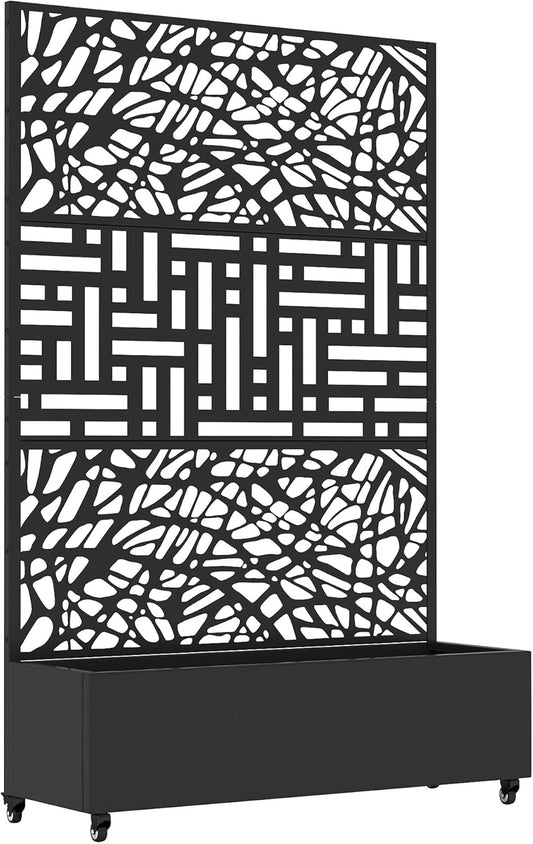 Casaphoria Metal Raised Garden Bed with Trellis and Wheels, 72"x47"x16" Planter Box for Climbing Plants, Vegetables & Vines, Features Drainage Holes and Privacy Screen, Black(Net&Helen)