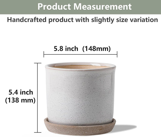 5.8 Inch Plant Pot: Ceramic Planter with Drainage Hole & Saucer - Cylinder Round Flowerpot for Indoor & Outdoor Plants - with Separate Tray for Home & Office - Retro Style, Grey