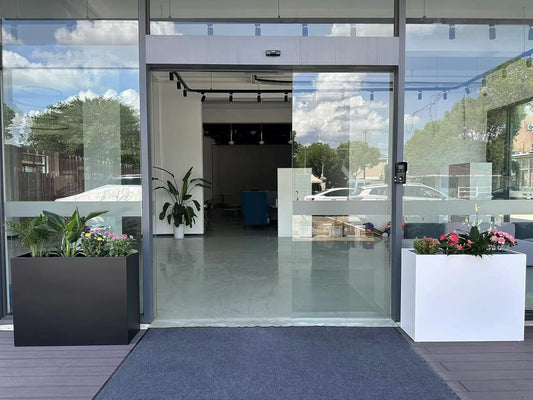 Metallic Heavy Planter Box for Outdoor or Indoor, No Assemble and Seamless, Large Square Planter, Cube Planter for Tall Trees, Plants, Flowers 21Lx21Wx24H 35Pounds White