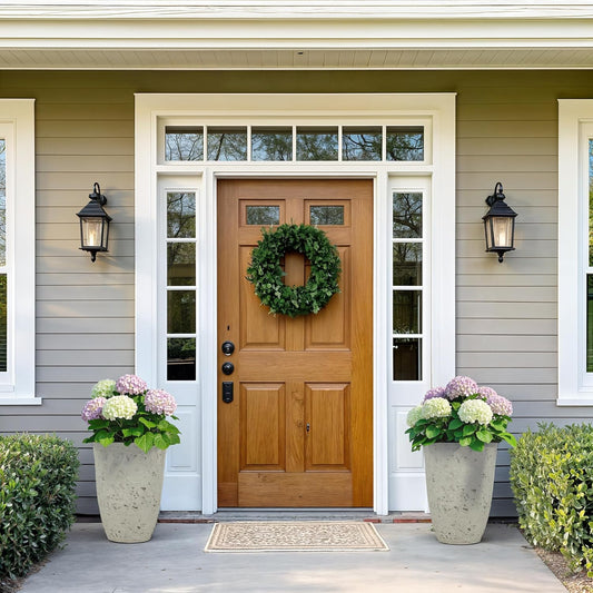 19.5" H Resin Tall Outdoor Planters, Set of 2 Country White Large Flower Pots with Handmade Birch Bark Texture, Heavy-Duty and Weather-Resistant for Year Round Indoor/Outdoor Space