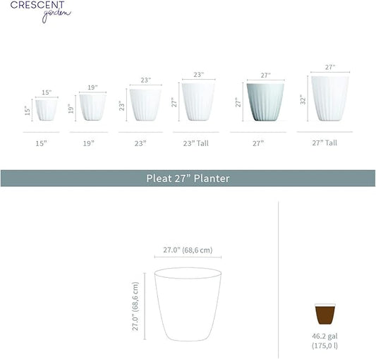 Crescent Garden Pleat Modern Decorative Planter, Indoor/Outdoor Pot, Resin Plant Pot with Drain Hole - 23" W x 23" H (Cloud White)