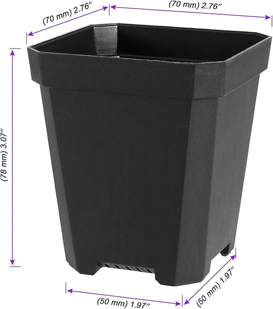 JOIKIT 120 Pack 3 Inch Black Square Nursery Pots, Plastic Plant Seedling Pot with Drainage Hole Saucers, Small Nursery Transplant Starter Planter for Indoor Outdoor Garden Office Balcony